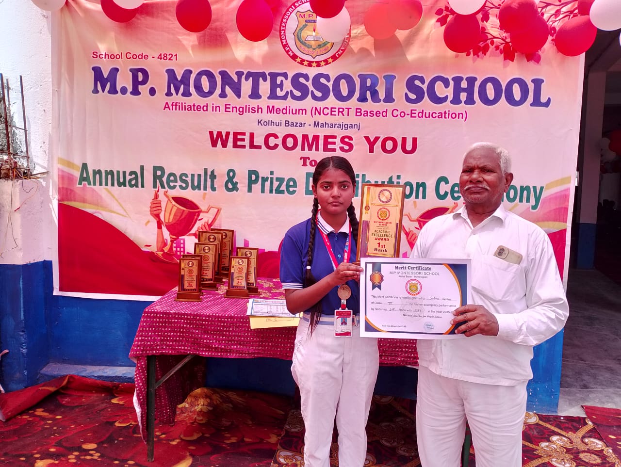 महराजगंज।कोल्हुई उपनगर में स्थिति एम० पी० मोंटेसरी स्कूल में मंगलवार को पैरेंट्स-टीचर मीटिंग (पीटीएम) का आयोजन किया गया जिसके मुख्य अतिथि प्रबन्धक मन्तू प्रसाद अग्रहरी रहे। प्रबंधक ने स्कूली बच्चो को ट्राफी, मेडल व सर्टिफिकेट देकर उत्साहवर्धन किया जिसे पाकर बच्चो के चेहरे खिल उठे। विद्यालय के प्रबन्धक मन्तू प्रसाद अग्रहरी ने कहा कि पीटीएम का उद्देश्य बच्चों द्वारा की जा रही मेहनत और असाइनमेंट से अभिभावकों को अवगत करवाना है।
